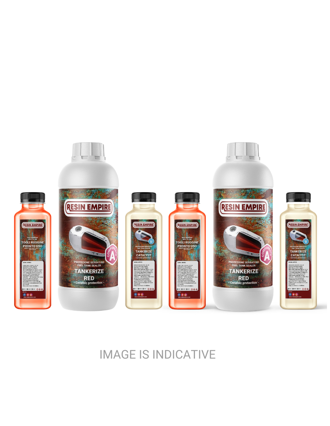Producto cerámico con alta resistencia química contra gasolina, aceites, grasas, agentes corrosivos. Gran kit rojo para el tanque de 50/55 litros