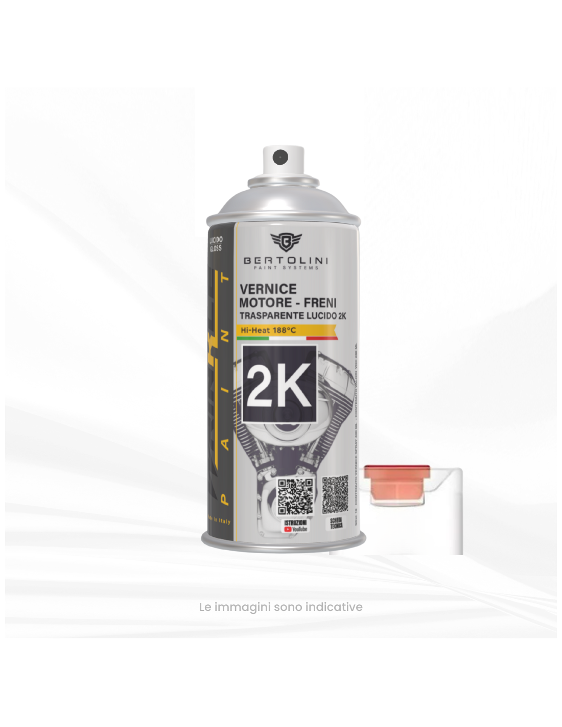 Desengrasar bien las piezas con nuestro desengrasante aeronáutico. No debe quedar rastro de grasa, óxido, imperfecciones ni suciedad de ningún tipo. Es obligatorio usar guantes de látex y nunca tocar las piezas metálicas con las manos desnudas. Preparar las piezas con nuestro primer negro Kustom Service en spray o versión líquida profesional. Antes de aplicar la pintura 2K, se deben aplicar dos manos de primer. Después de aplicarlas, espere de 30 a 60 minutos a temperatura ambiente y luego comience a aplicar la pintura directamente sobre el primer sin lijarlo. Después de aplicar la pintura en spray sobre el motor o los componentes mecánicos, espere 1 hora. Pasada una hora, comience a aplicar directamente la pintura 2K transparente brillante en spray. Este spray, a diferencia del 1K, es 2K. Esto significa que le dará el mismo resultado que la versión líquida, pero con la ventaja de ser en spray. Para usarlo, debe presionar el botón que se encuentra en la parte inferior de la lata. Antes de usar este spray, retire el botón rojo del tapón transparente, voltee el spray boca abajo, coloque el botón rojo en el vástago en el fondo del spray y presione bien durante 30 segundos. El botón activa el catalizador dentro del spray, lo que hará que la pintura se endurezca. Atención: si no realiza este procedimiento, la pintura no se secará y no resistirá ningún tipo de sustancia química. En este punto, agite bien el spray y aplique una primera capa ligera, luego espere 10 minutos. Después de 10 minutos, aplique una capa completa y espere 15 minutos. Aplique una segunda y última capa completa y espere los tiempos técnicos de 48 horas para poder montar las piezas. Tenga en cuenta que este transparente resiste la temperatura de los motores, pero no se debe aplicar en los escapes.