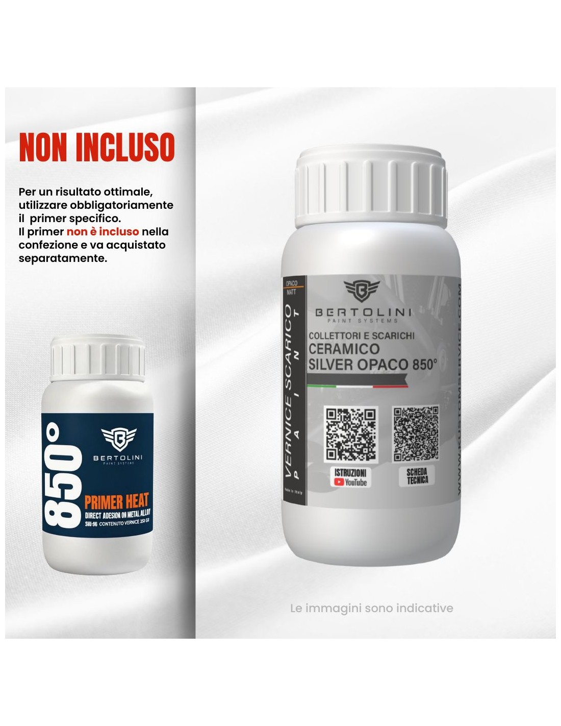 Nous produisons également une peinture qui résiste jusqu'à 1800 degrés, mais uniquement sur demande via WhatsApp au +393342272665.